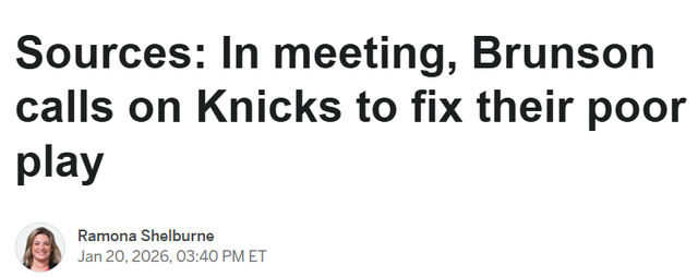 北京时间1月21日,据ESPN消息人士透露,纽约尼克斯队当家球星杰伦-布伦森在球队于主场惨遭独行侠队血洗后,召集球员召开了一次闭门会议。