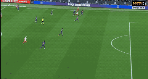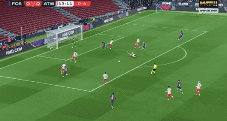 半场结束前,佩德里在禁区内被放倒,裁判果断判罚点球。拉菲尼亚操刀,轻松骗过穆索,弗里克实现了半场追回两球的目标。